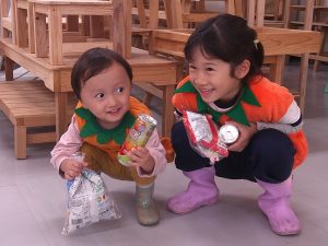『トリック・オア・トリート(お菓子をくれないと、いたずらしちゃうぞ』と言い、お菓子をゲットしていました。